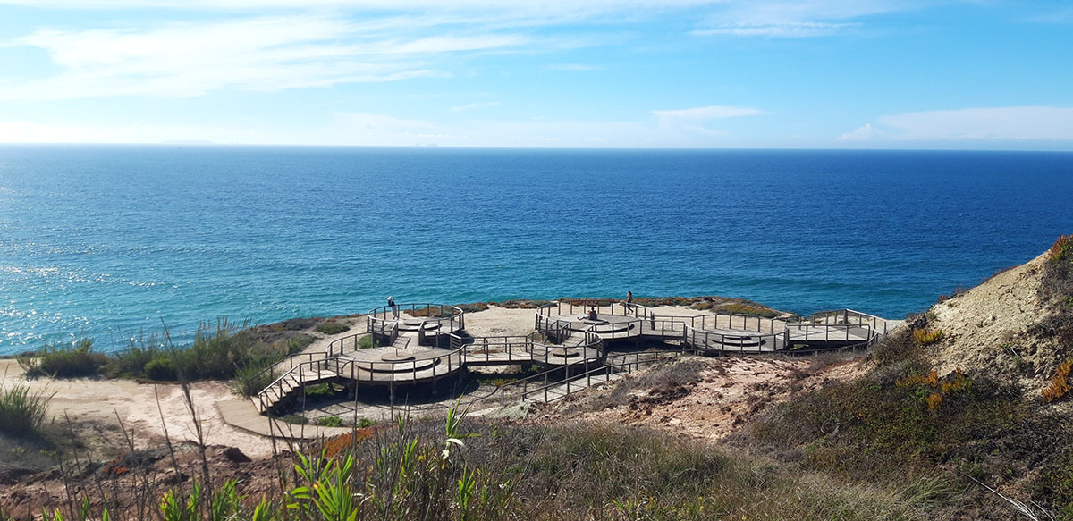 Op het einde van de VARIANTE ATLANTICA de verlenging van de AVENIDA ATLANTICA de weg VAN CALDAS DA RAINHA die eindigt aan de oceaan vind je de MIRADOURA DA FOZ Do ARELHO. Een pallisadewandeling met een schitterend uitzicht op de Lagune en oceaan. Een must do! Wandel helemaal naar beneden en geniet van de prachtige natuur, 50 minuten heen en terug.